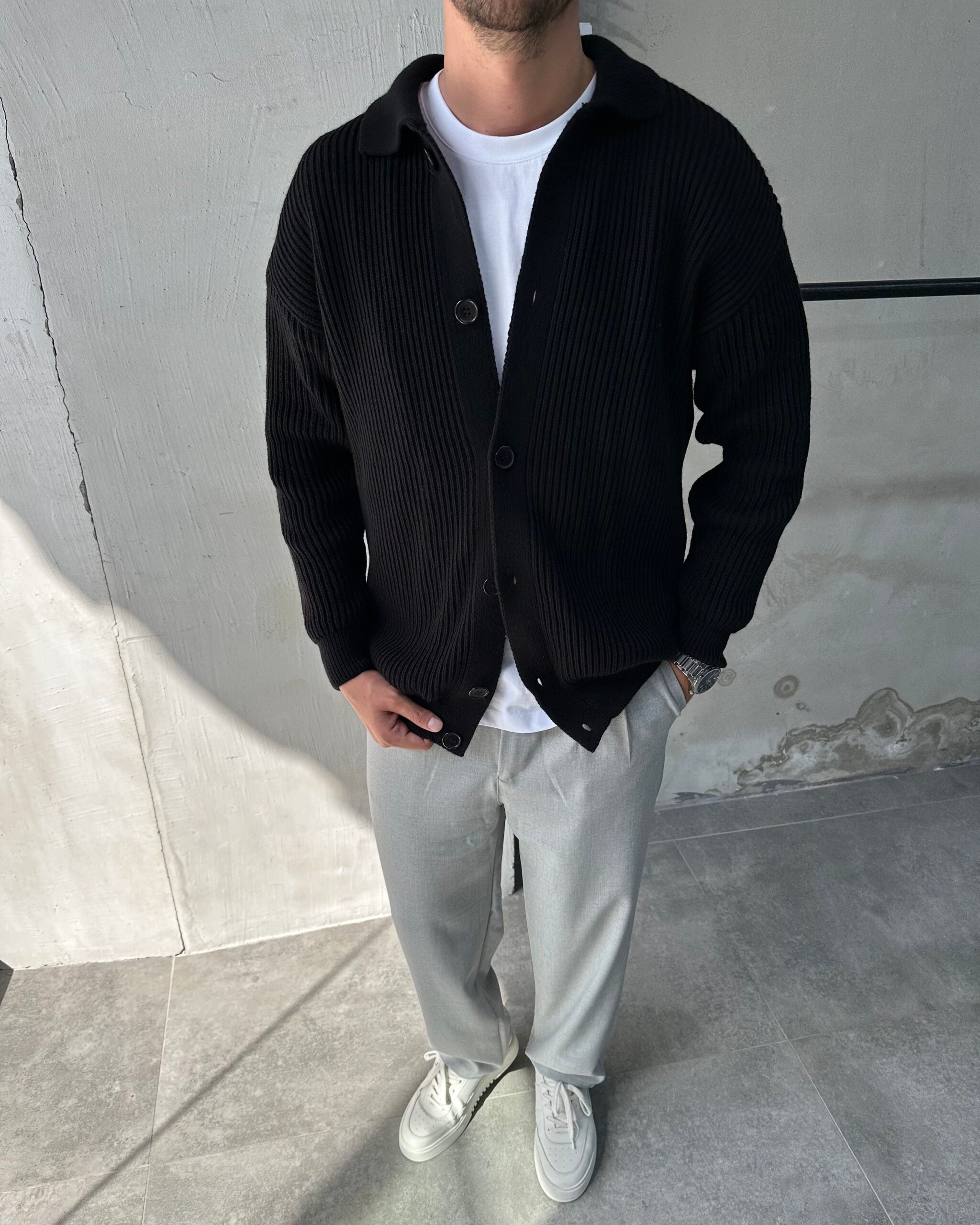 Düğmeli Örme Hırka Tarzınızda fark yaratan, sofistike ve aynı zamanda rahat bir parça arıyorsanız, bu Düğmeli Örme Hırka tam size göre. Klasik bir hırkanın ötesinde, gömlek veya Polo yaka detayı ve zarif düğmeleriyle modern bir ceket estetiği sunar. Ürünün en çarpıcı özelliği, onu diğerlerinden ayıran kalın ve lüks örgü dokusudur.